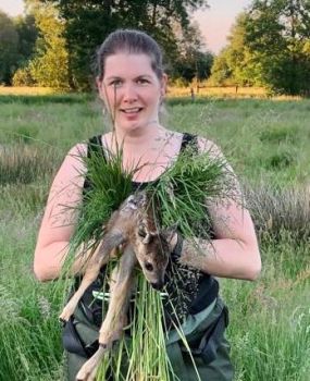 Seit Anfang dieses Jahres habe ich die Funktion der Kassenwartin übernommen. Ich gestalte für unseren Verein die Seiten von Facebook und Instagram und fülle sie mit Inhalt.Außerdem koordiniere ich mit meinem Mann zusammen die Termine für die Drohnenflüge und unterstütze die Piloten im Feld. Das Retten der Wildtiere liegt mir sehr am Herzen. Wie die meisten in unserem Verein bin auch ich bereits seit vielen Jahren ehrenamtlich für die Wildtiere aktiv. Zur Wildtierrettung kam ich, weil ich selbst bereits einige schwer verletzte Rehkitze nach der Mahd gefunden habe. Die Bilder, wie die Ricke bei Ihrem Kitz steht, welches drei Beine durch das Mähwerk verloren hat und diese riesigen, angsterfüllten Kulleraugen,mit denen mich dieses schwer verletzte Rehkitz ansieht,habe ich immer im Hinterkopf.Das zu verhindern treibt mich an – und nichts ist im Augenblick effektiver als eine Drohne mit Wärmebildkamera. Die Zusammenarbeit mit den Landwirten ist TOP und so können wir zusammen richtig was bewirken.